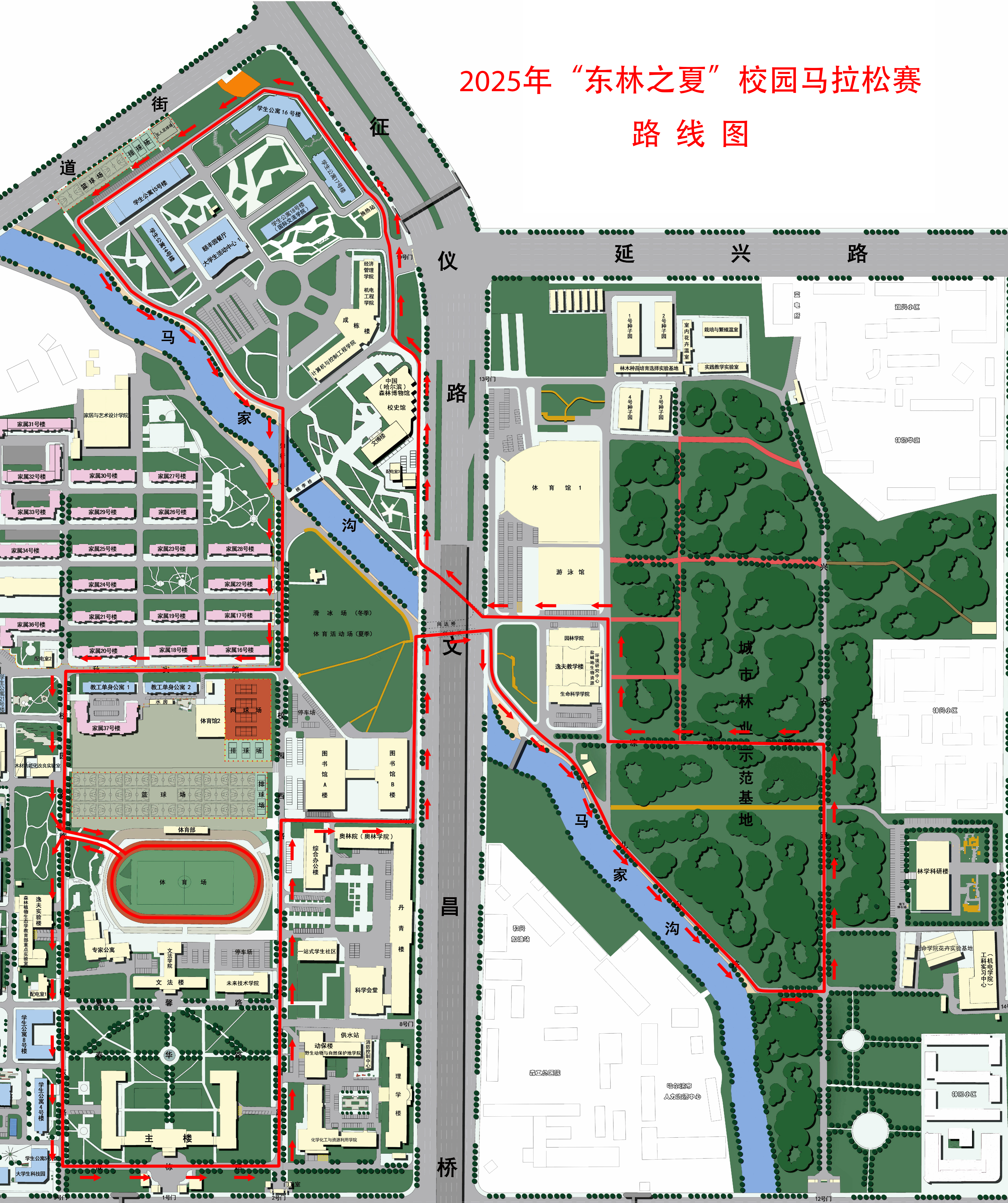 学校田径场为比赛起、终点,参加体验赛的选手需按路线环校园跑一圈,参加竞速赛的选手需按路线环校园跑两圈,一圈约5.3公里(路线图详见附件)。