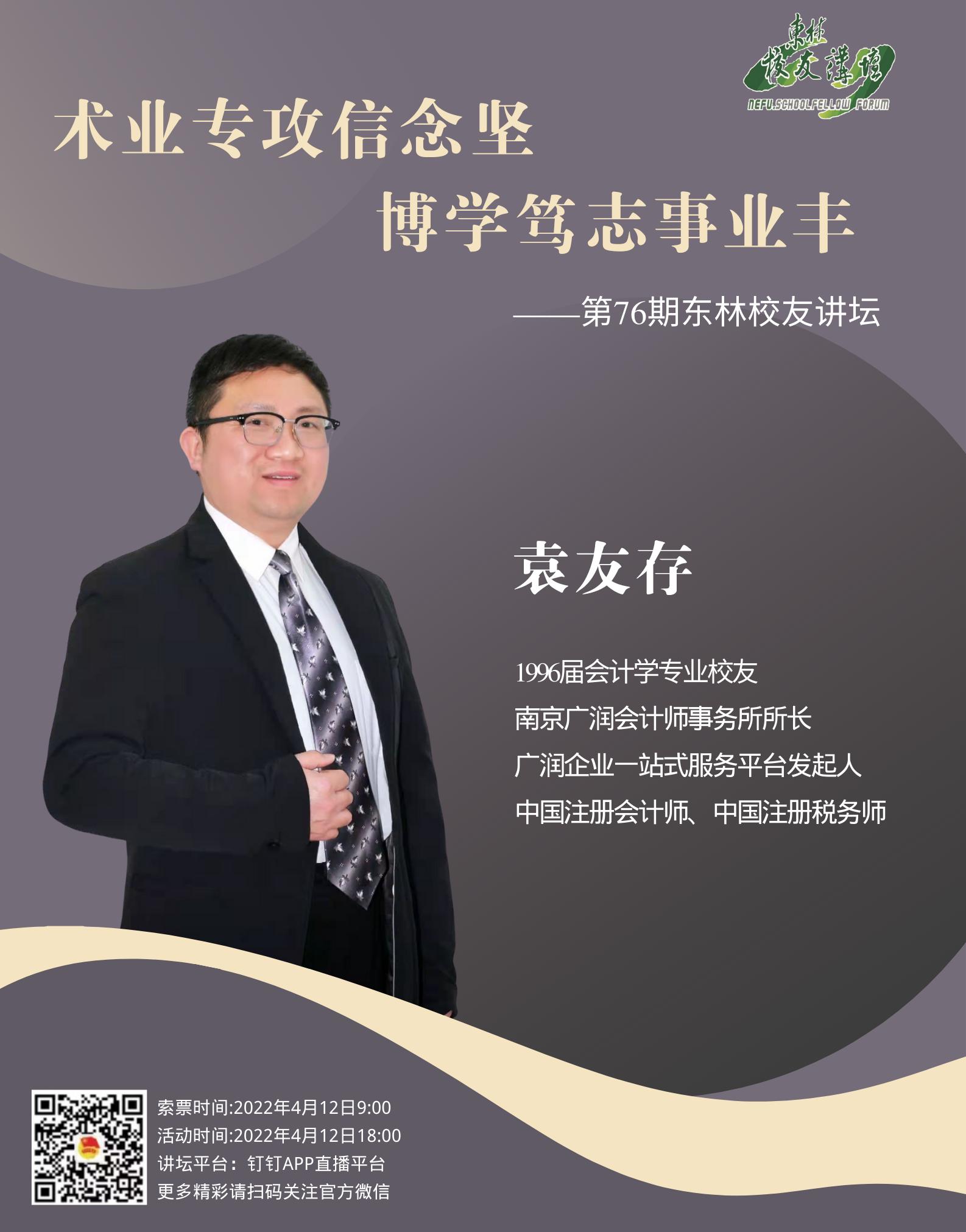 本期校友讲坛,袁友存校友将结合自身的工作经历与奋斗历程,为同学们讲述着眼下、精专业、立长志的重要意义,分享他对大学生职业规划的深刻认识和独特见解。