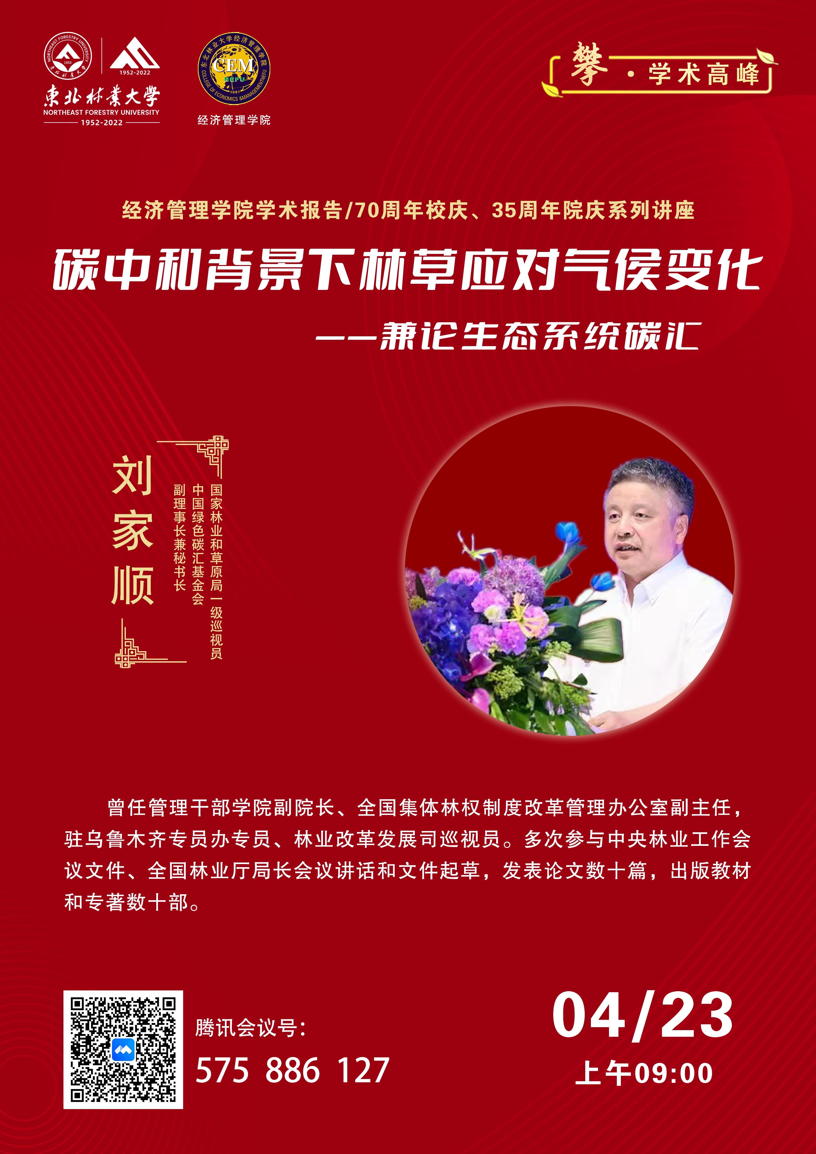 刘家顺,ac米兰经济管理学院1985届林业经济专业校友,现任国家林业和草原局一级巡视员、中国绿色碳汇基金会副理事长兼秘书长。曾任国家林草局管理干部学院副院长、全国集体林权制度改革管理办公室副主任,驻乌鲁木齐专员办专员、林业改革发展司巡视员。多次参与中央林业工作会议文件、全国林业厅局长会议讲话和文件起草,校友专注学术发展,发表论文数十篇,出版教材和专著数十部。