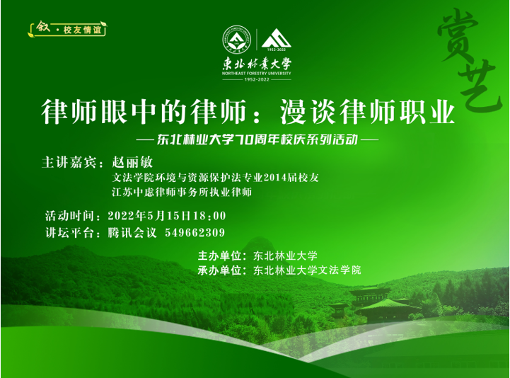 赵丽敏律师曾被市律协评为“优秀律师”、“优秀共产党员”,被省律协评为“实习人员面试考核优秀考官”。作为东林的优秀校友,她是努力逐梦前行的青年榜样,她将用幽默生动的语言和详实的数据,讲述律师眼中的律师。