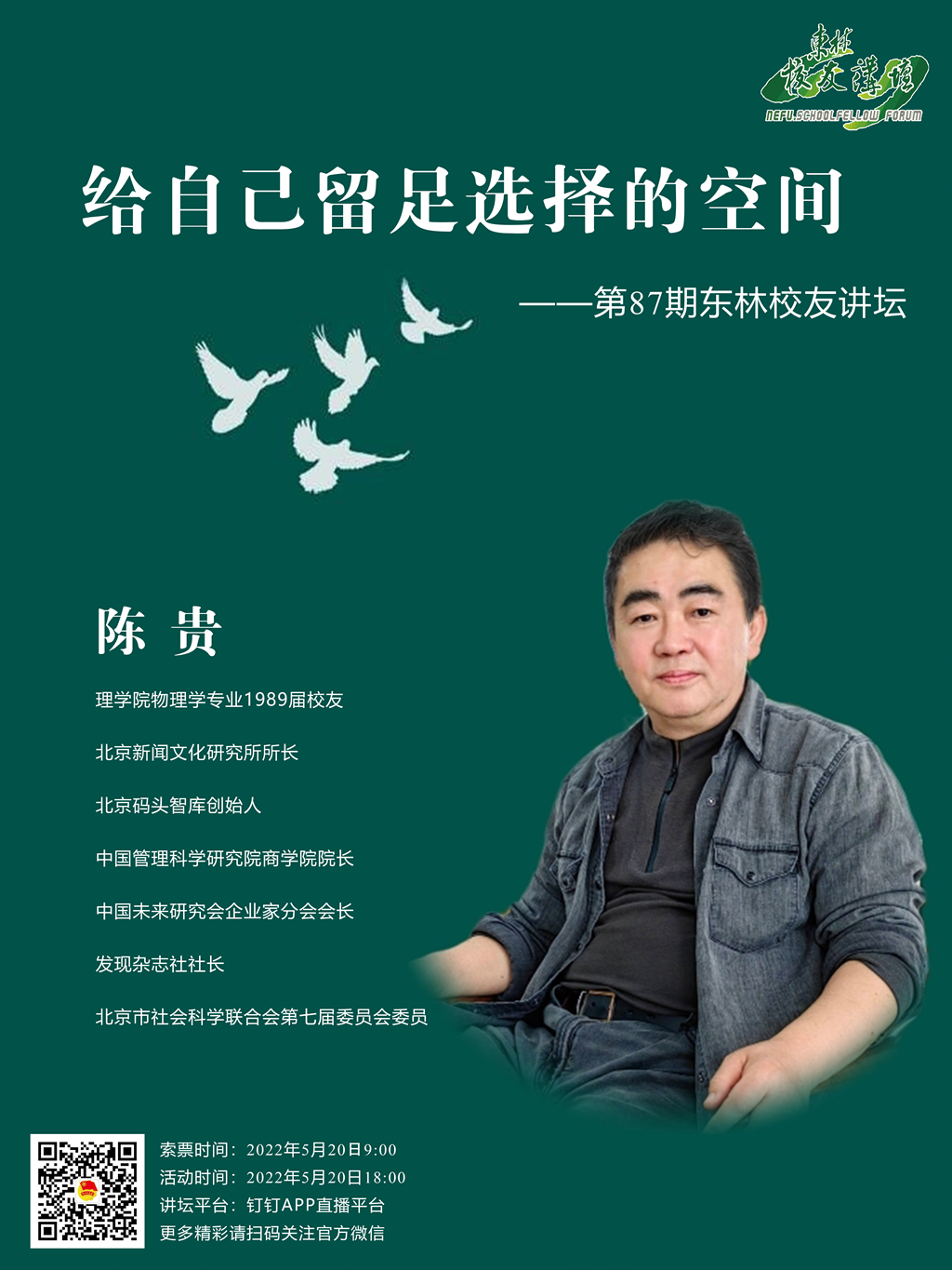 届时,陈贵校友将结合他的亲身经历开展本次讲座,讲述他的心路历程与人生经验,感悟东林精神的传承!