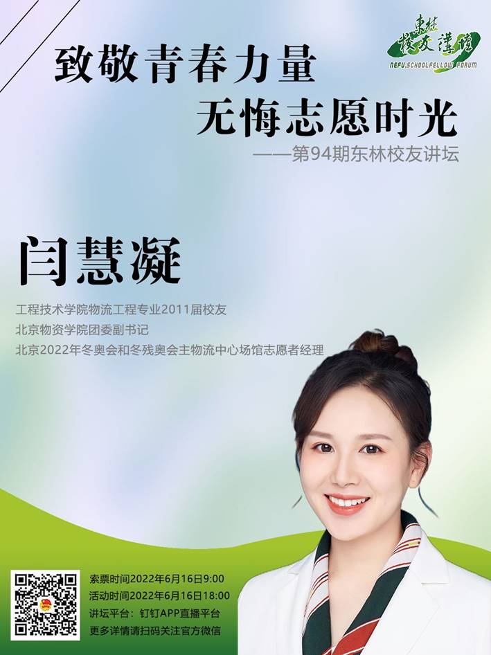 本期校友讲坛,闫慧凝校友将结合自己的青春奋斗史与志愿服务经历为同学们讲述奋斗的意义和志愿服务的力量。