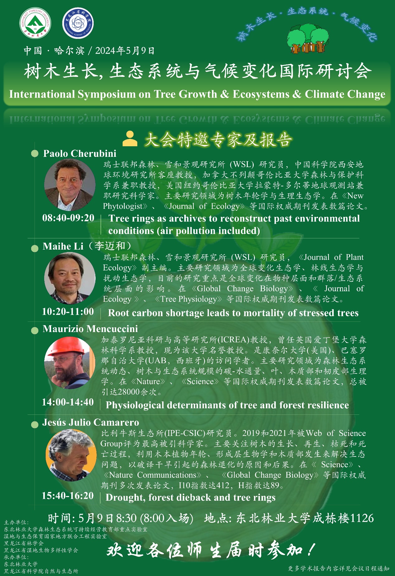 报告人简介:比利牛斯生态所(IPE-CSIC)研究员。2019和2021年被Web of Science Group评为最高被引科学家。主要关注树木的生长、再生、枯死和死亡过程,利用木本植物年轮、形成层生物学和木质部发生来解决生态问题,以破译干旱引起的森林退化的原因和后果。在《Science》、《Nature Communications》、《Global Change Biology》等国际权威期刊多次发表论文,I10指数达412,H指数达89。