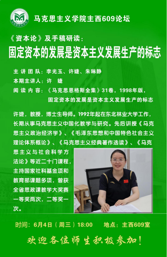 报告题目:《资本论》及手稿研读:固定资本的发展是资本主义发展生产的标志