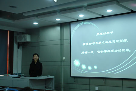 2009年3月18日下午13:40,园林学院吴研老师在逸夫楼431室进行了她在北京为期半年的进修汇报演讲。