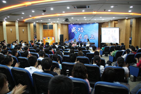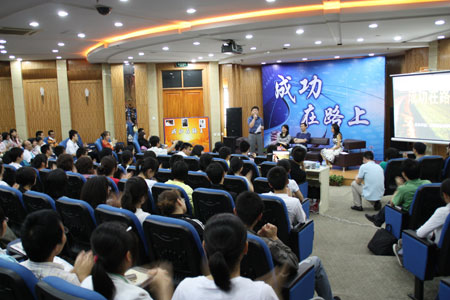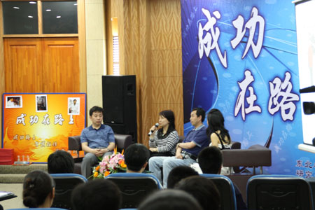 今年是五四运动九十周年,九十年来,伟大的五四精神始终砥砺着一代又一代有志青年奋发成才、建功立业,涌现了许多可歌可泣的杰出青年。本期《成功在路上》以“品读青春日子点亮精彩人生”为主题,以三位杰出青年科学家的成功故事为主线,分享他们曾经的青春岁月,品读他们非凡的成才之旅。在节目中,三位嘉宾满怀深情的回忆了自己的大学岁月,分享了在成功路上曾经的欢笑和泪水、坚持和放弃、激情和理性、收获和付出,以及对于青春梦想的执着追求和对现实生活的豁达包容。第十六届“黑龙江省十大杰出青年”获得者,ac米兰生命科学学院阎秀峰教授在谈到自己求学时期和创立ac米兰细胞生物学科的别样经历后认为,研究生生涯是人生发展的重要阶段,一个迈向成功的研究生应该具备三个要素:较好的心理素质、较高的品质修养和较强的专业水平,一个全面发展的研究生才能在未来的社会竞争中求得生存和发展。第三届“中国青年女科学家奖”及第八届“黑龙江省青年五四奖章”获得者、ac米兰森林植物生态学教育部重点实验室付玉杰教授,结合自身经历介绍了作为一个成功女科学工作者应该如何正确处理好工作与家庭的关系,她独特而贴切的观点和思想引起了现场广大女研究生的共鸣。第十七届“黑龙江省十大杰出青年”获得者刘守新教授现场为大家展示了载银活性炭的独特功用,真情道出了自己在开展科技创新过程中的感人细节,强调成功是一种心里的富足感、一种享受过程的幸福感,认为大学生要充实、快乐的度过青春时光,而他现场演唱《水手》的动人歌声,则向大家呈现了一个青年科学家高雅的生活格调。最后,三位嘉宾还就同学们提出的研究生科学研究方法、学术论文发表、女大学生成长成才及如何培育大学生的成功品质等问题作了精彩细致的回答。