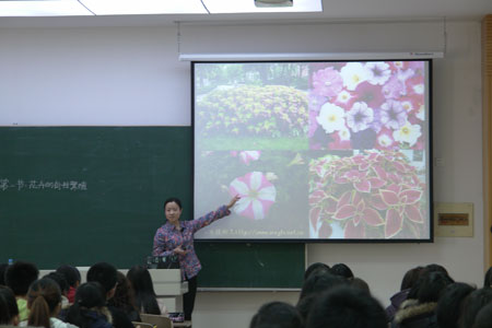 3月25日上午10:15,教务处督导王晋华教授、园林学院三十余名教师及兄弟学院教师,观摩了园林学院青年教师杨春雪副教授主讲的《园林花卉学1》公开课。杨春雪副教授在整个教学过程中,讲课认真,内容组织有序,信息量大;教学方式多样化,语言准确生动;注重理论联系实际,与学生有很好的互动。
