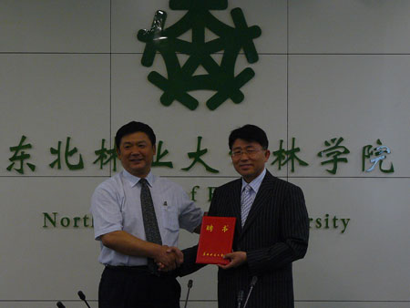 林学院沈海龙副院长向Dr. Songmun Kim颁发ac米兰官方网站客座教授聘书