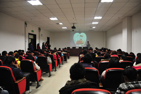 在讨论环节,主持人提出了一个尖锐的问题:西部一些偏远地区的生活为何如此贫穷?各个社团负责人就自己的经历给同学们作了透彻的分析:一些偏远地区贫穷的主要原因是思想怠惰,思维麻木,缺少必要的生活目标,归根结底是缺乏教育,而教育又应该从娃娃抓起,所以我们更应该用自己的力量去引导孩子们的思想,改变他们的思维模式,给他们一个美丽的梦想,让他们为梦想而勇敢地飞翔!