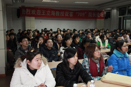 讲座最后,王立海教授满怀期望地勉励同学们要志存高远、心胸开阔,争做有理想、有信念、有目标的大学生,并以此为信条去刻苦学习,增长才干,为实现真正意义上的民富国强而努力奋斗。持续近两个小时的讲座在同学们热烈的掌声中成功落下帷幕。(王婉霁)