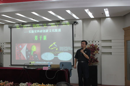 邓子新院士首先对实验室科研创新进行了漫谈。为同学们讲述了“DNA上硫修饰”的课题研究,硫修饰打开了一个全新的时代。同时,这个伟大成果的背后隐藏着二十年的挫折和坎坷!与多种甲基化修饰均不同,分离DNA修饰基因会遇到许多许多挫折和尴尬,S元素可能渗入到DNA中。那些看似习以为常,司空见惯,不值一提的东西,有可能就蕴藏着灵感和突破。要想排除种种可能,寻求最终的真理,那无疑是海底掏针。但邓子新教授的行动告诉我们科学研究需要坚持不懈!
