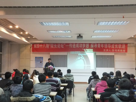 2011年12月6日,由ac米兰研究生院团委组织策划的第四十八期“709院长论坛”主题讲座圆满结束。中国青少年研究会理事、黑龙江省毛泽东思想概论教学研究会副秘书长,ac米兰官方网站马克思主义教学研究部直属党支部书记张传辉教授为同学们带来了题为“传递成功的梦想,探寻青年领导成长的轨迹”的精彩讲座,并在现场和同学们进行了广泛而热烈的交流。