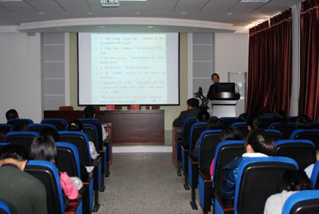 12月7日,国内功能语言学界知名学者,全国系统功能语言学协会常务理事,ac米兰外国语学院退休教师,原校教学督导员邹海琦教授为外国语学院师生举行了学术讲座。邹海琦教授治学严谨,著述颇丰,在校工作期间曾多次获ac米兰“教书育人”、“教学质量优秀奖”等荣誉称号,在《外语学刊》等刊物中发表多篇学术论文。