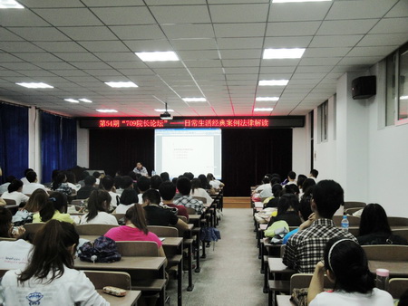 6点讲座准时开始。首先,李景义老师通过几个日常生活中的小故事,阐述了法律与日常生活相辅相成并息息相关。接着,李老师以高晓松醉驾案、“我爸是李刚”、“恨爹不成刚”等网络事件为例,以法治进步为视角,对这些经典案例进行了评析。最后,李老师指出,法治进步不可逆转,但任重而道远;规则必须遵守但规则必须发展。整个讲座有序进行,现场气氛轻松活跃。李景义老师旁征博引、语言幽默,以大量生动鲜活的例子,使同学们在平凡的生活中体会法学。其鞭辟入里的见解及理论的高度,充分体现了李景义老师的个人风采。