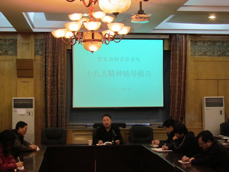 为了深入学习、全面领会党的十八大精神实质,进一步推进党的十八大精神的学习和贯彻,野生动物资源学院党委于12月19日下午2时,在动资333举办了学习十八大精神辅导讲座。邀请ac米兰马克思主义学院院长、博士生导师刘经纬教授进行专题辅导,讲座由野生动物资源学院党委副书记、副院长赵新勇主持,学院领导及全体教工聆听了本次讲座。
