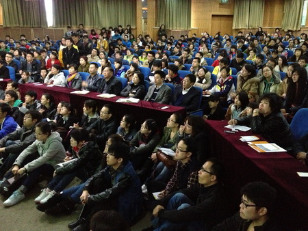 下午3点30分,讲座现场已经座无虚席,连会场的过道上都挤满了或坐或立的教师和学生。杨传平校长以及科学技术研究院、林学院、图书馆的领导都以普通教师、科研人员的身份来到了讲座的现场,整个会场充满了热烈而浓厚的学术气氛。